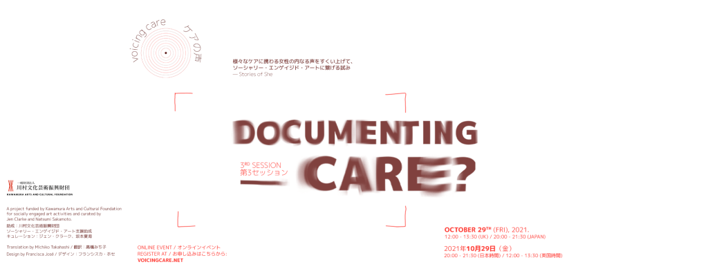 第3回目のセッション「ケアを記録する?」はこれまでのセッションとは少し形式を変えてお送りします。今回は参加者の皆様のお話を中心にしたセッションです。ぜひ皆様の声をお聞かせください!