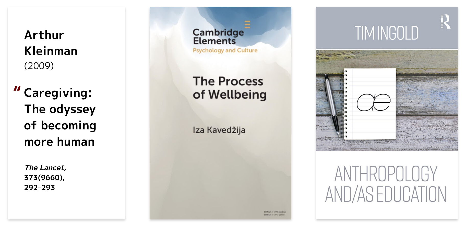アーサー・クラインマン(Arthur Kleinman) 2009年「ケアギビング(ケアの提供):より人間らしくなるための探求」. The Lancet, 373(9660), 292-293、373(9660)(292-293ページ)よりの抜粋: