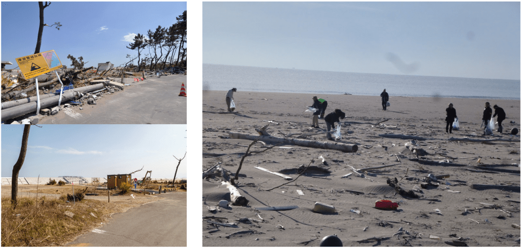 Today, I would like to talk about care for the ocean, focusing on the beach that was once devastated by tsunami on March 11th , 2011. The beach named Arahama is a bit more than 10km away from downtown Sendai, where I live. After the tsunami, the beach was totally covered in debris. The debris is now almost cleared but still smaller debris remains, not only on the surface of the beach but also underneath it.